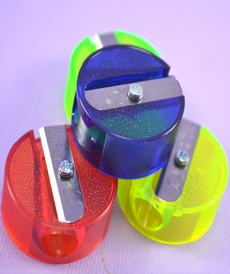 تتميز البراية بشفرة معدنية لبري الأقلام